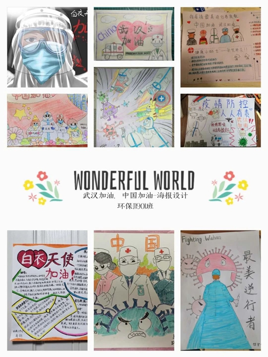 學生在家制作的抗“疫”海報