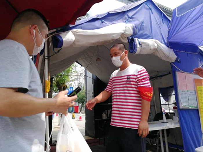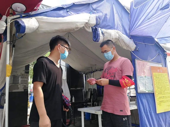 若有戰!召必回!下沉干部們再次于6月15日馳援西紅門鎮。西紅門鎮緊鄰新發地,大量新發地從業人員就住在我們值守的四個村子,西紅門鎮更是直接被列為了高風險地區,但是面對切實可見的危險,大家沒有退縮!在抗疫一線頂著夏日的驕陽,履行職責,勇于擔當,直面危險,同當地的社區干部們一起為大量新發地從業人員做核酸檢測,充分展現了極高的政治責任擔當。