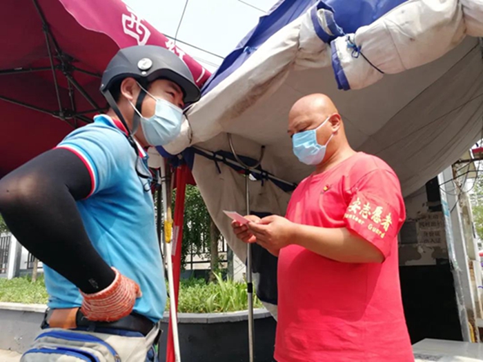 再次回到熟悉的崗位,再次見到熟悉的面孔,再次聽到熟悉的聲音,我更加明確自己肩負的責任與使命,沒有什么比健康更重要的了,為了大家的健康,我要實實在在做好村里疫情防控工作。根據村委會要求,做過核酸檢測的人員需要居家觀察14天,在此期間,我們需要每天上、下午巡村,一個人負責測量體溫、一個人負責記錄、一個人負責發放“承諾書”等文件并收回、一個人負責收出入證,村委會人員負責解釋并說明。炎炎夏日,每天頂著大太陽在村里忙活,眼睛因為流汗過多經常浮腫,回家后全身酸痛,想想自己的責任與使命,第二天依舊精神飽滿的上崗。在我們齊心協力下,振亞莊至今無病例,相信我們采取的措施將有效控制并最終戰勝疫情!