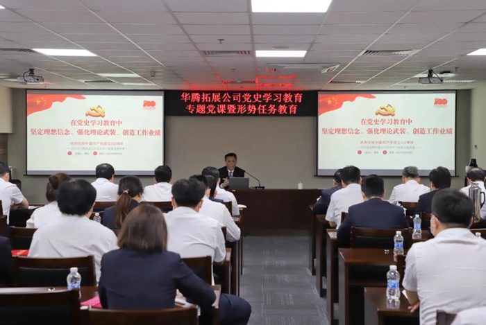5月10日,北京化工集團總經理助理,華騰拓展公司黨總支書記、董事長李泳以《在黨史學習教育中堅定理想信念、強化理論武裝、創造工作業績》為題,向全體黨員及職工代表講授黨史學習教育專題黨課。
