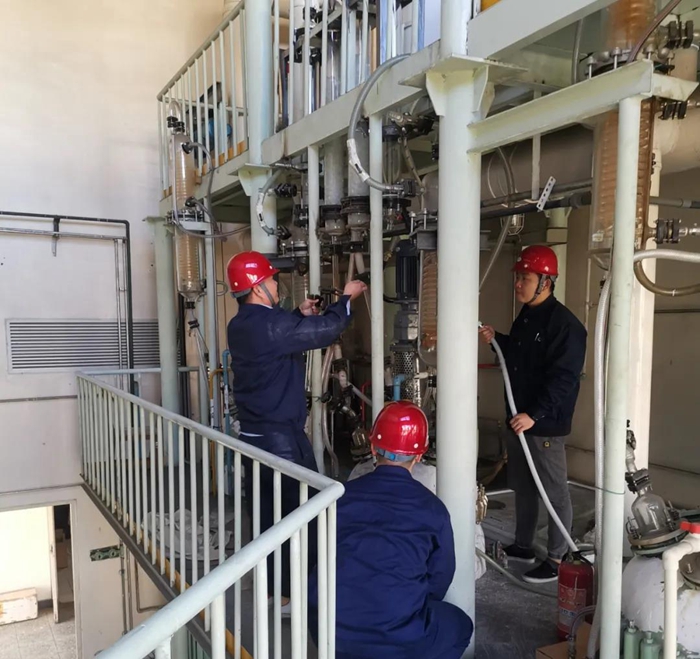 為搶抓市場機遇,試劑所干部職工放棄國慶部分休假,投入到緊張的設備維保和生產中。今年以來,試劑所相關產品市場占有率持續提升,抓生產保供貨成為試劑所當前重點任務。試劑所多品種車間、高純試劑車間和后勤保障等部門的干部職工響應黨總支的號召,紛紛放棄國慶假日陪家人、外出旅游的機會,連續奮戰在崗位上,開足馬力維護設備保運行。