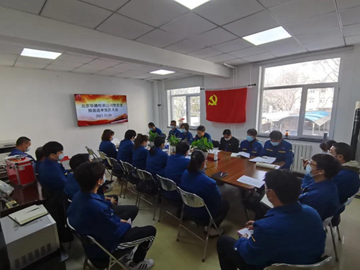 北京華騰檢測公司黨總支召開全體黨員大會,進行黨總支換屆選舉。