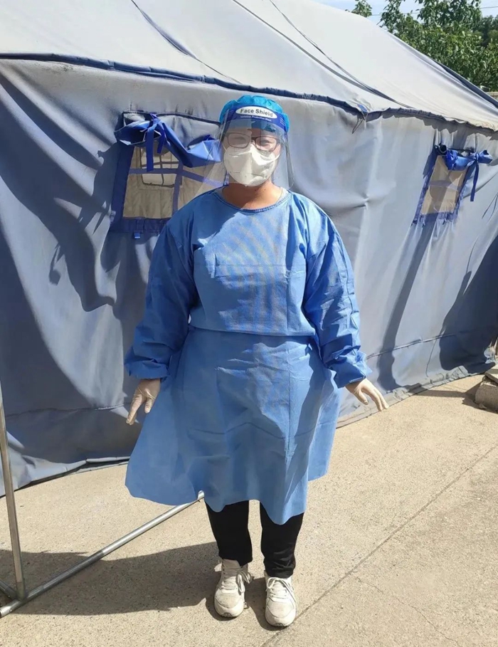 在疫情肆虐的5月,李天瓊下沉的北車營村社區由原來的管控區升級為封控區,全村居民禁止外出,核酸檢測也由原來的集中檢測變為上門檢測。由于村子臨近山區,村民多為平房住戶,這就需要李天瓊等社區工作人員每天走在崎嶇的山路上挨家挨戶檢測,而且要身穿全副武裝的大白,就這樣,每天要完成1500多戶檢測任務。