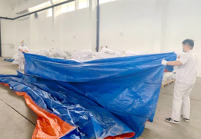 各部門參演人員分工明確,布置警戒線、放置沙袋、遮蓋苫布、啟動排水裝置,演練按照方案穩(wěn)步推進。