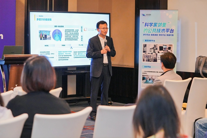 論壇中,北化生科黨總支書記、總經(jīng)理申海成從專業(yè)運(yùn)營(yíng)空間、專業(yè)運(yùn)營(yíng)團(tuán)隊(duì)和專項(xiàng)產(chǎn)業(yè)基金等多個(gè)方面,深度聚焦以核酸藥物為代表的五大細(xì)分賽道,向與會(huì)者詮釋“國(guó)際生物島”獨(dú)有的“1公里科學(xué)家鄰里”生態(tài),并通過高標(biāo)準(zhǔn)技術(shù)平臺(tái)、專項(xiàng)基金、技術(shù)審評(píng)、專屬空間、高科技人才和公共服務(wù)六大生態(tài)要素協(xié)同,系統(tǒng)闡釋從“0-1-N”的產(chǎn)業(yè)化路徑。