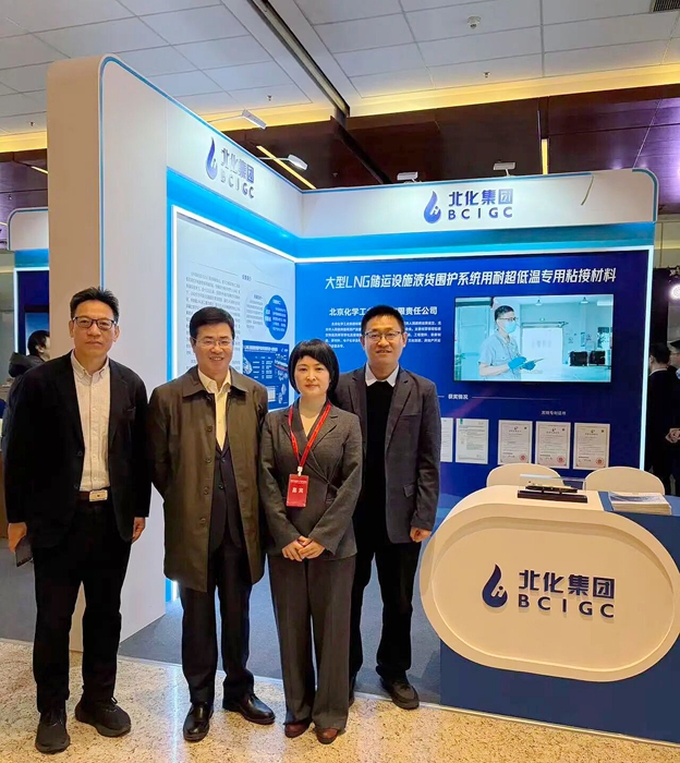 在科技創新成果展區,北京化工集團的展位以其展品的重大技術突破,吸引了眾多能源裝備、海洋工程、新材料領域的企業代表、技術專家駐足交流。其創新成果“絕緣板用聚氨酯膠粘劑”已通過法國GTT M3005、M4005認證和五大船級社認證,并在廣東生產基地實現規模化、穩定化生產;“頂梁板用環氧膠粘劑”也已成功試產并成功通過法國GTT M3006、M4006認證。市場前景廣闊。